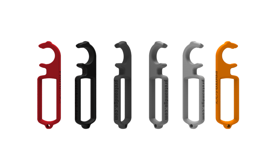 Obridor de portes 'Clau anticovid'. | Foto: Cedida 3. Obridor de portesTant pot ajudar-te a respirar com pot ajudar-te a evitar el contagi: el disseny d'elements de protecció té moltes vessants a explorar. Un objecte que no s'ha popularitzat tant com les mascaretes és l'obridor de portes, un dispositiu que t'ajuda a obrir portes, picar timbres o els botons de l'ascensor sense necessitat de posar en contacte la teva pell amb una superfície que altres persones han tocat abans. La 'Clau anticovid' de Proto&Go!, a Montcada i Reixac, és de descàrrega gratuïta per a impressores 3D o es pot demanar en físic de manera gratuïta. També està exposat un obridor de portes desenvolupat pel CIM de la Universitat Politècnica de Barcelona que es posa al braç i que permet no haver d'utilitzar les mans.