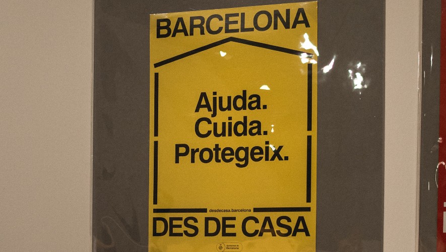 Exemple de disseny gràfic contra la Covid-19. | Foto: Cedida5. Senyalització anti-CovidLa primera part de l'exposició 'Emergència! Dissenys contra la Covid-19' se centra en el disseny d'objectes que són barreres pel contagi de la Covid o que assisteixen a pacients que l'han contret. Tot i això, existeix un vessant del disseny que se centra en l'abans, és a dir, en fer veure a la ciutadania quines normes de seguretat cal prendre. El disseny gràfic de cartells i campanyes publicitàries també és un exemple de la necessitat d'implicar dissenyadors en aturar l'alerta sanitària. El cartell 'Barcelona, des de casa', que va promoure l'Ajuntament de Barcelona per tal que la gent es confinés, evidencia la importància de treballar les campanyes de difusió i publicitat perquè la ciutadania tingui informació sobre què cal fer i què no en un context nou com el de la Covid-10.
