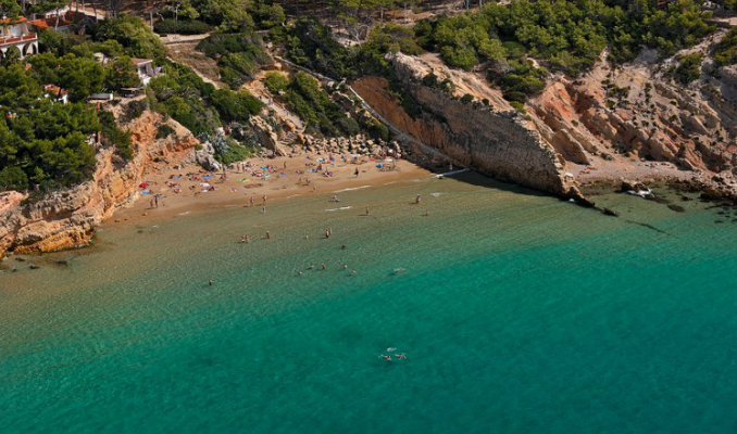 2. Cala Sirenes Si el que voleu és passar una bona estona de relax, aquesta és la vostra platja. Un espai natural digne d'admirar que destaca per la seva aparença salvatge. Tot i que té sorra, no es pot definir com una perfecta platja d'arena perquè hi trobareu força roques, d'aquí que no sigui gaire transitada. L'aigua és molt transparent però presenta un cert desnivell que obliga a tenir cura a l'hora d'endinsar-s'hi, sobretot els infants i els banyistes de més edat. Els penya-segats que envolten la platja estan coberts per arbres i, darrere d'aquests, hi trobem uns quants edificis i un petit quiosquet on prendre un refresc. En definitiva, una estampa de postal, ideal pels que aprecien la naturalesa. Sapigueu que no hi ha cap pàrquing públic per deixar el vehicle a la vora, així que haureu d'estacionar pels carrers adjacents de l'avinguda de València de Miami Platja.