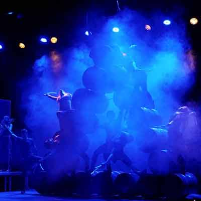 En aquest espectacle multidisciplinari, el so de la percussió es combina amb sons electrònics i de vent, equilibris acrobàtics, claqué, veus cantades, percussió corporal i dansa, tot al voltant d’una estructura de bidons amb què els personatges interactuen constantment. Un viatge musical extasiant sota la direcció del manresà Dan Arisa.
