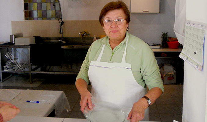 Fa tres anys que va començar de voluntària al menjador. Després de tota una vida a la parada del mercat de Tortosa, quan va arribar el moment de jubilar-se, li va caure el món a sobre. Què en seria d’ella sense el mercat? Una de les coses més importants a la vida és treballar a gust, del que t’agrada. Com conceps la vida sense el treball que has fet durant 57 anys? Als 13 anys va començar a ajudar la mare a la parada de la xarcuteria, mentre el seu germà ajudava el pare, que feia de barber. El mercat era vida. Ben pensat, és el centre neuràlgic i l’òrgan vital del poble: no hi imatge més feliç i més carregada de vitalitat que un mercat amb les parades obertes, els clients comprant animadament, els mercaders, feliços, preguntant com estan i desitjant-los bon dia, la música dels altaveus, la xerrameca de la gent... Al mercat es coneixien tots, paradistes i clients. La mare deia, quan es referia a que coneixia tothom, que coneixia un coix tapat i gitat. No. No ho dubta ni un instant: allà ha sigut molt feliç.En jubilar-se, com que era incapaç d’aixecar-se del llit i quedar-se a casa i no fer res, va estar anant a Càritas durant uns mesos, com a voluntària, per cosir roba. Al principi hi estava a gust, però ben aviat va sentir que alguna cosa no rutllava: no tractava amb les persones, no parlava amb la gent. I, per una banda, sentia que podia aportar alguna cosa més. I per una altra banda, ella mateixa ho necessitava. Carme tenia gana...Així que un dia, una amiga que la va veure una mica moixa li va comentar que potser anar a donar un cop de mà al menjador social era una bona idea. I tant, si va ser bona idea... Al menjador té contacte directe amb la gent, i a l’hora, amb els seus problemes. Així, els pot ajudar d’una manera més completa. Ser voluntària del menjador social és una gran missió. Perquè no només és servir el menjar, és donar afecte a la gent que hi va, preguntar-los com estan, parlar-los, fer-los companyia. La majoria que vénen a dinar són habituals, i elles els coneixen, els saluden, els abracen. Són persones que sovint necessiten ser tractades com a persones, sense compadir-les. Simplement, aportant-los una mica d’alegria i bon tracte. El plat de menjar és imprescindible... però donar-li una mica d’afecte a una persona és igual d’important. Clar que s’ha de ser una mica valent, del contrari, o t’enfonsaries veient algunes situacions personals o li faries fàstics a tot. I per a vindre a treballar de voluntària amb una cara seriosa, millor oblidar-se del tema.De manera que, els dijous, allà està Carme amb el davantal posat, amb gana de gent, somrient i sense por a res. Perquè als 71 anys ja es té temor a ben poques coses. De 12.30 a 15h, hi és servint plats, juntament amb tres voluntàries més i Cristina. Cada dia són voluntàries diferents, unes els dilluns, altres els dimarts. Però la que ve per primera vegada, s'acaba quedant. És una tasca que omple el que no està escrit. Quan arriba el dinar, elles paren taules i el comencen a servir. Primer plat, que poden repetir, segon, raderies, com diem a Tortosa... I quan ja han acabat de dinar els comensals, a desparar taules, escurar, netejar, desinfectar. I si és dimecres, els assistents poden quedar-se a jugar a cartes, a dominó, a xarrar.Al maig, el menjador complirà cinc anys i segur que organitzaran alguna festeta. No es pot dir que la gent no hi col·labori. L’ajuntament el primer, però també molts particulars. Una botiga els va donar torrons; un forn els va repartir pastes; una fruiteria, taronges... La gent dóna, encara que també estigui necessitada. Està arribant el poble on no arriben els governs.Ella, tortosina de tota la vida, reconeix que a Tortosa costa de vindre. Però també molt de marxar. Carme no es mouria mai d’aquí... És de les que pensa que no cal queixar-se tant. Al cap i a la fi, tenim una mica de tot i no és una ciutat ni massa gran ni massa petita. I tenim el riu, clar. I si toques el riu, la toques a ella... Fa catorze anys que és activista de la Plataforma en Defensa de l’Ebre, anant a totes les assemblees els dimecres a la nit. Quan es va quedar viuda, va pensar que el seu home hagués defensat el riu tant com hagués pogut, per la qual cosa s’hi va llançar. Al mercat, que mai no s’havia venut roba, va muntar la parada amb les samarretes blaves del nus. Ha anat tres cops a Brussel·les, va entrar al Parlament europeu com a suporter i fa just deu anys va ser el membre de la PDE que va recollir la creu de Sant Jordi, quan la plataforma va ser guardonada.Avui, ¿o potser millor demà?, anirà al Casal dels antics cantaires, com li diu ella, a jugar a romicú, un joc composat per fitxes de números que és entretingudíssim perquè s’ha de pensar molt. Com els sudokus, però a aquests ja els hi ha agafat el truc... Ara bé, el seu principal hobbie és el patchwork. Una nora li va ensenyar i es va enganxar molt. Fa cobrellits que regala als bons amics, o per als fills d’aquests. I quan pot, s’escapa a l’Escola d’Art per restaurar mobles.Carme té gana. Guarda el davantal a la bossa i surt cap a la plaça Mossèn Sol, situada al barri del Rastre de Tortosa, que ara mateix està deserta. Els obrers que l’estan reformant des de fa un mes ja han marxat a dinar i els carrers estrets i frescos del voltant romanen en silenci. Quina calma, com quan acabava la jornada al mercat, després de la fregadissa de coberts i plats, d’un menjador ple de gent que xerra animadament... Entra al seu cotxe, és hora de tornar a casa. Però ja està desitjant que passi ràpid un altre cop la setmana.Qui és?Carme Nolla Panisello (Tortosa, 1944) sempre ha viscut a Tortosa i “no la canviaria per res”. Va treballar 57 anys a la parada “Xarcuteria Nolla Panisello” del Mercat Municipal de Tortosa i des de fa tres que és voluntària al Menjador Social Mossèn Sol, servint els dinars dels dijous i oferint alegria i compa