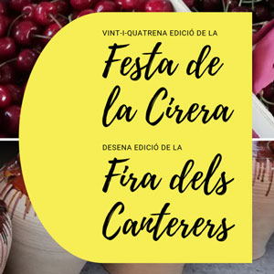 24a edició de la Festa de la Cirera i 10a edició de la Fira dels Canterers de Miravet, amb un dia d'activitats diverses al voltant de dos productes emblemàtics del poble, les cireres i els càntirs. Es podrà gaudir de showcooking de coques de cirera, dinar popular, concurs de llançament de pinyols de cirera, degustació de coques i ball. També hi haurà exposició i venda d’aquests productes directament de la mà dels seus productors.