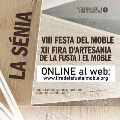 12a edició de la Fira d'Artesania de la fusta i el moble i 7a edició de la Festa del Moble de La Sénia que enguany, degut a la crisi sanitària que estem vivint, s'adapta i es reinventa duent a terme aquesta edició en streaming.