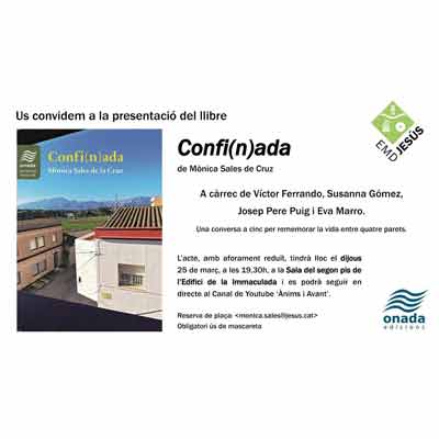 Presentació del llibre Confi(n)ada de Monica Sales de Cruz a càrrec de Víctor Ferrando, Susanna Gómez, Josep Pere Puig i Eva Marro. Una conversa a cinc per rememorar la vida entre quatre parets.