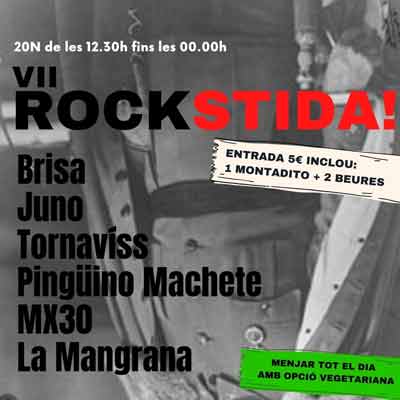 Setena edició de la Rockstida del Centre Social 'Lo Maset' de Deltebre, festival que durarà tot el dia, per a tota la família amb zona infantil, montadito i música en directe en format acústic i de diferents estils, des del reggae, el jazz, el pop, rock i folk.