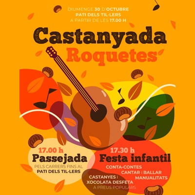 Festa de la Castanyada a Roquetes, que començarà amb una caminada pels carrers del poble fins al Pati dels Til·lers i seguirà amb conta-contes, música per cantar i ballar, manualitats i xocolata i castanyes a preus populars. Una tarda d’amistat i germanor on tots esteu convidats a xalar!
