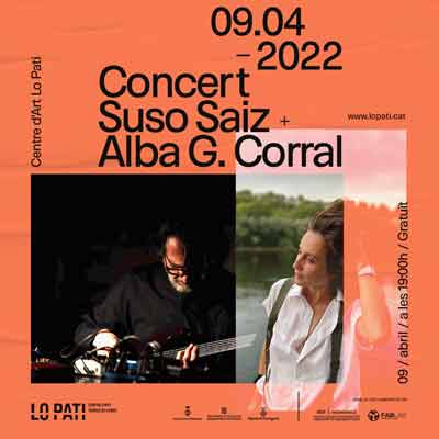 I per indagar en la relació que han establert els dos artistes, Lo Pati ha programat un espectacle d'electrònica audiovisual que unirà en un mateix escenari l'univers sonor de Suso Saiz amb la creativitat d'Alba G. Corral. El músic d'avantguarda, arranjador i productor Suso Saiz (Cadis, 1957) és un referent de la música electrònica a Espanya. Un guitarrista imaginatiu i subtil, amb una incansable activitat que cobreix un ampli espectre de la música i la seva interacció amb altres disciplines artístiques, com les arts plàstiques i la poesia.