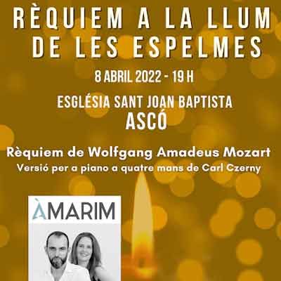 Dins de la programació de l'Agenda Cultural de Primavera, concert de piano a quatre mans: el Rèquiem de Mozart, a càrrec de Maria Lombarte i Manel Miró. Un concert íntim, proper al públic i amb una atmosfera molt sensorial i fantasiosa, gràcies a la il·luminació càlida i màgica de les espelmes.
