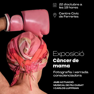 Amb motiu del Dia Internacional Contra el Càncer de Mama (19 d'octubre), exposició de fotografia ‘Càncer de mama’, una exposició de 38 fotos de gran format de vuit dones que han patit càncer de mama. També tindrà lloc una xerrada concienciadora amb la participació de les fotògrafes del projecte, una model, una psicòloga, una infermera oncològica i una doctora oncòloga completaran la proposta.