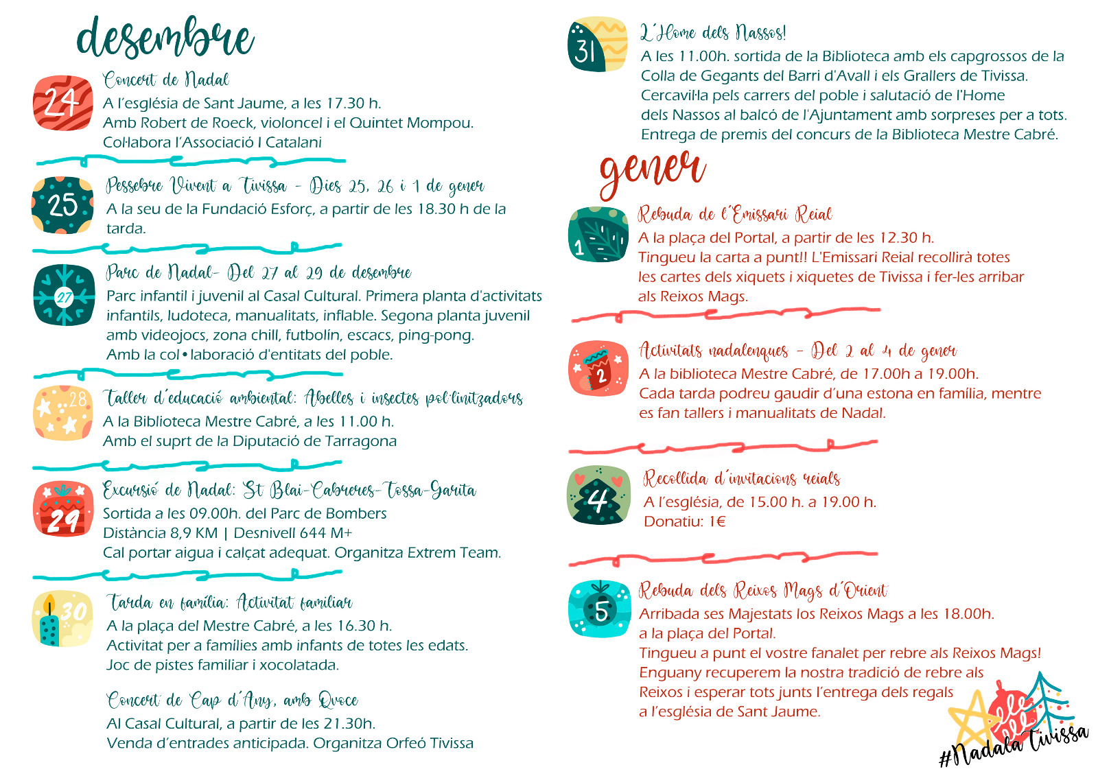 Tivissa celebra les Festes de Nadal, i ho fa amb un programa farcit d'actes entre els que no hi faltaran la Fira de Nadal, el Pessebre Vivent o la tradicional Cavalcada dels Reis Mags, entre altres.