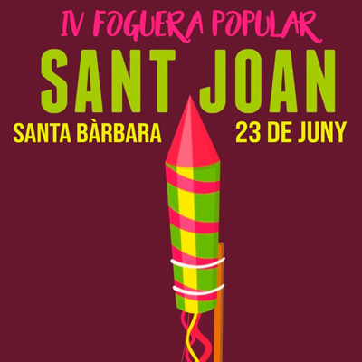 Celebració de la IV Foguera de Sant Joan a Santa Bàrbara, amb l'arribada de la Flama del Canigó, encesa de la foguera, sopar popular i ball amb festa.