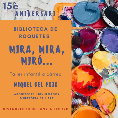 Amb motiu del 15è aniversari de la Biblioteca de Roquetes, taller infantil 'Mira, mira... Miró' a càrrec de l'arquitecte i divulgador d’història de l’art, Miquel del Pozo.
