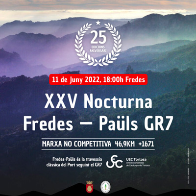 XXV Travessia Noctura entre Fredes i Paüls, que enguany celebra el seu 25è aniversari, és la travessia clàssica del Port seguint el GR7.