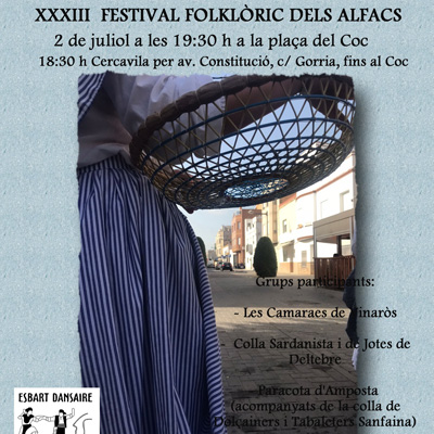 18:30h | Cercavila per av. Constitució, c/ Gorria, fins al Coc 19:30h | XXXIII Festival Folklòric dels Alfacs