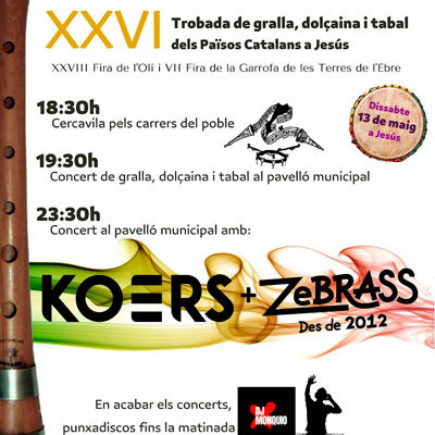 En el marc de la XXVIII Fira de l'Oli i la Garrofa de les Terres de l'Ebre a Jesús, 26a edició de la Trobada de Gralles, Dolçaines i Tabals dels Països Catalans amb música, festa i cultura popular.