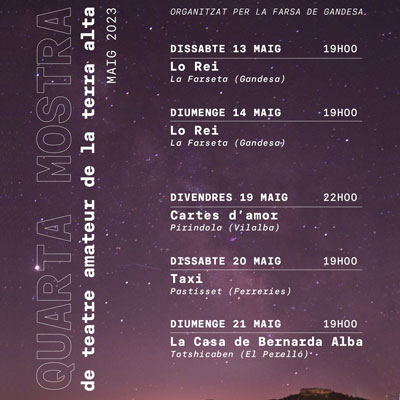 Quarta edició de la Mostra de Teatre Amateur de la Terra Alta, amb més d'una setmana de representacions teatrals diverses.