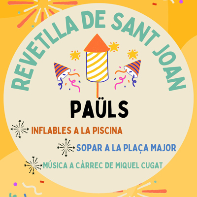 18-21h | Inflables infantils 21:00h | Sopar a la plaça 23:15h | Foguera de Sant Joan i actuació de Miquel Cugat