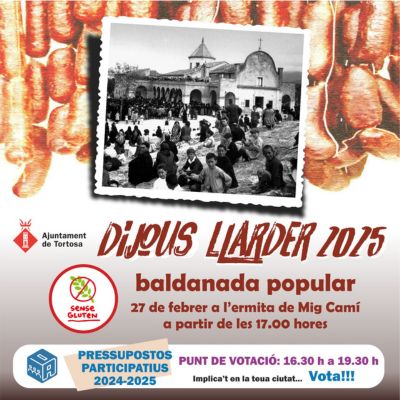 Celebració del Dijous Llarder a Tortosa, amb la popular baldanada a l'Ermita de Mig Camí, on es repartiran entre tots els assistents baldanes, acompanyades de barres de pa (enguany també apta per les persones celíaques).