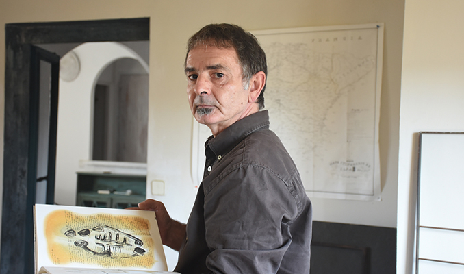 Curiós i receptiu envers tot allò que l’envolta, Àlvar Bonet (Deltebre, 1963) sap trobar al seu voltant el detonant amagat que engega el procés creatiu: des d’un tros de cartró a una peça de ceràmica. Aquest divendres 8 de novembre presenta un llibre d’artista inspirat en el jaciment pre-ibèric de la Gessera, a Caseres.