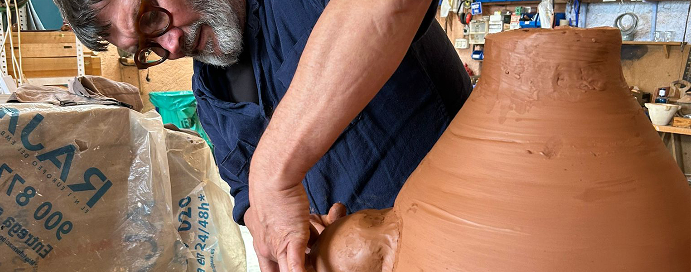 - Quina pregunta dona fruit a aquest projecte?La idea d'alguna manera és preguntar-nos qui s'està fent càrrec de la terra. A Miravet, hi havia més de trenta famílies de terrissers. Trenta famílies, no trenta empreses, que vivien exclusivament del món de la ceràmica. Ara en queden cinc. D'aquests cinc, només un es fa ell l'argila. La resta la compren a altres llocs. Continuen fent les formes tradicionals, però la matèria no és d'aquí. Qui es fa càrrec de la terra? Ara que el riu ja no porta sediments, d'on es treu l'argila? Ara les formes tradicionals estan fetes amb terra d'Andalusia o d'altres països. És una paradoxa.