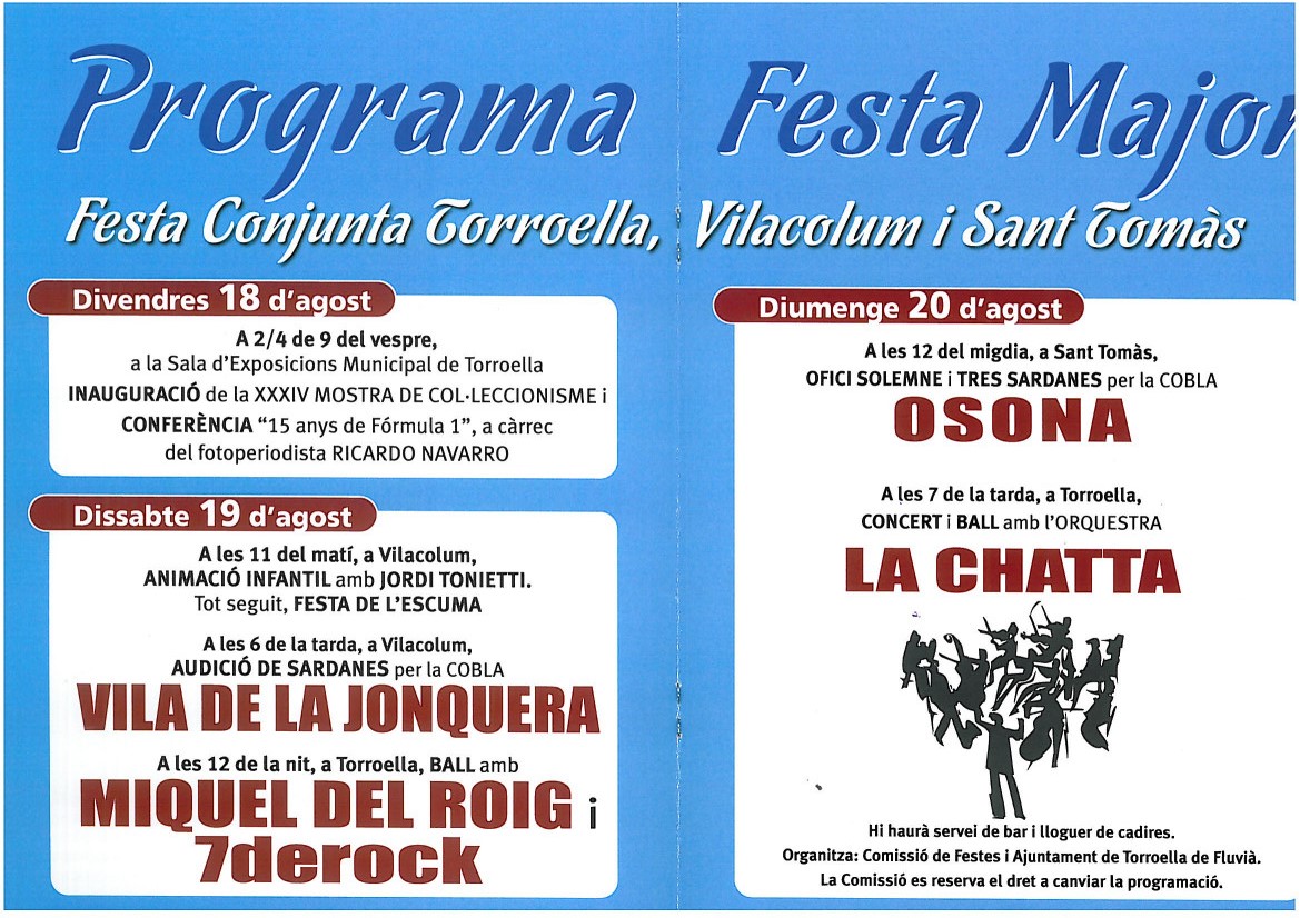 La Festa Major de Torroella de Fluvià, Vilacolum i Sant Tomàs és una festa local on els protagonistes són la gent del poble, i on conviden a tothom a les activitats que han organitzat: ball, música, festa de l'escuma i més.