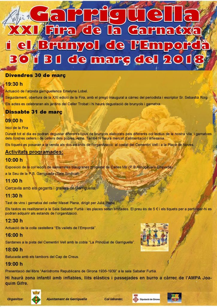 Un bon moment per degustar els millors brunyols de l'Empordà és pel cap de setmana de la fira de Garriguella. Per acompanyar-los no hi ha res que un glop de d'aquest vi dolç tant apreciat en el nostre territori. La Fira de la Garnatxa i el Brunyol de l'Empordà també compta amb un munt d'activitats complementaries, no us la perdeu!