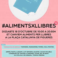 Aliments per llibres. Productes de mercat (taronges, mandarines, pomes, cols, patates, arròs, llegums, llet sencera, galetes, cacao soluble, conserves de tonyina o sardines, sucre, gel de bany, oli d'oliva o de girasol, tomata fregida). Tots els aliments recaptats es destinaran al Banc d'Aliments de les comarques gironines.