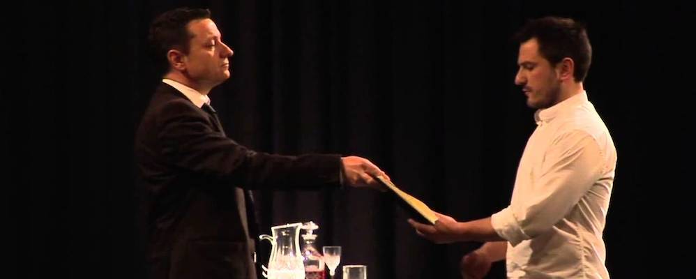 El verí del teatreCompanyia H6 TeatreDivendres 27 de novembre, 22hDirecció: Albert MañéIntèrprets: Josep Riumalló i Raúl Martínez Josep Riumalló, Raúl Martínez Sinopsis: El Verí del teatre és una adaptació de l´obra de Rodolf Sirera sobre les possibilitats de l´home de distingir entre el que és primer i el que ve després, fins sobrepassar el món del teatre i abastar el joc de relacions entre classes socials. L´individu que té el poder que empra la força contra algú considerat inferior, amb un refinat dïaleg dramatic a la manera il·lustrada sobre vida i art, ficció i realitat, que es separen i s´apropen en un joc que desemboca en un final imprevist.