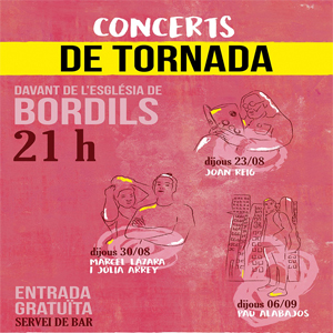 Segona edició dels 'Concerts de Tornada', cicle de concerts íntims i de proximitat en un entorn acollidor, per acomiadar l'estiu amb un somriure. En aquesta edició formen part del cartell Joan Reig, Marcel Lázara i Júlia Arrey i Pau Alabajos.