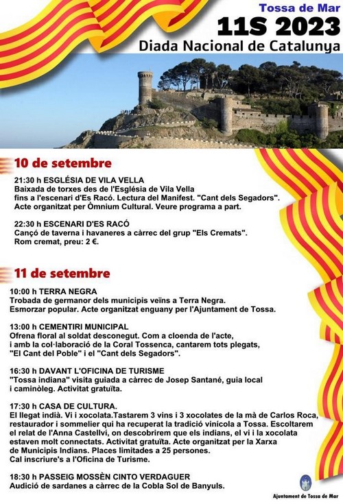 Tossa de Mar celebra la Diada Nacional de Catalunya, i ho fa amb un programa entre els que destaquen la baixada de torxes des de l'Església de Vila Vella o la trobada de germanor amb esmorzar popular a Terra Negra.