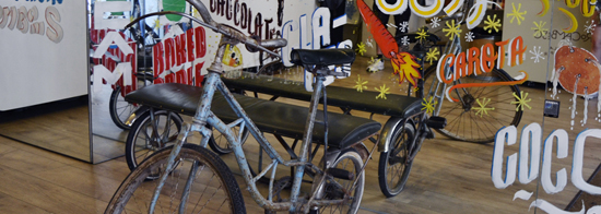 Una escena tan rocambolesca com veure una bicicleta penjant al sostre o col·locada a l’entrada del local ens serveix de prova per determinar l’esperit hipsterià que s’amaga a l’interior del comerç. No tenim clar quin és el missatge, si es tracta d’una metàfora de la infància o si, simplement, no sabíem on col·locarla, però el cas és que les bicicletes són un dels segells irrefutables del hipsterisme.