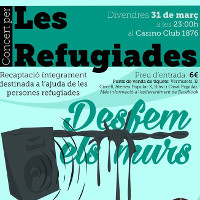 Des de la Coordinadora Penedès Acull, us convidem a participar al Concert per Les Refugiades, un concert solidari on tota la recaptació de taquilla anirà íntegrament destinada a l'ajuda de les persones refugiades.