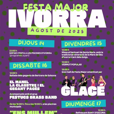Agenda Dg 18 Dll 19 Dm 20 Dc 21 Dj 22 Dv 23 Ds 24 Foto: Cedida Penelles Festa de Sant Antoni a Penelles Diumenge 18 de gener Foto: Cedida Alguaire Festa de Sant Antoni a Alguaire Diumenge 18 de gener Foto: cedida Lleida Taller familiar 'Mira, apunta i dispara!' Diumenge 18 de gener, 11h Foto: Cedida Guissona Espectacle familiar 'Lumière' Diumenge 18 de gener, 17:30h Foto: Cedida Cervera Espectacle familiar 'Aladin, #ThePopMusical' Diumenge 18 de gener, 18h Foto: Cedida Tàrrega Teatre familiar 'Safari' Diumenge 18 de gener, 18h Foto: Cedida Lleida Festivitat de Sant Antoni Abat a Lleida Del 10 al 18 de gener Foto: Cedida Alpicat Festa Major de Sant Sebastià a Alpicat Del 16 al 18 de gener Foto: Cedida Fondarella Festa Major de Sant Sebastià de Fondarella Del 16 al 20 de gener Foto: Cedida La Granja d'Escarp Festa Major d'Hivern de La Granja d'Escarp Del 16 al 20 de gener Foto: Cedida Les Borges Blanques 29a Fira de l'Oli de Qualitat Verge Extra i les Garrigues Del 16 al 18 de gener Foto: Cedida Massalcoreig Festa Major d'Hivern a Massalcoreig Del 16 al 18 de gener Foto: Cedida Alfarràs Festa Major de Sant Sebastià a Alfarràs Del 17 al 20 de gener Foto: Cedida Sarroca de Lleida Festa Major de Sant Antoni a Sarroca de Lleida Dies 17 i 18 de gener Foto: Cedida Vilanova de Segrià Festa Major d'Hivern a Vilanova de Segrià Del 17 al 19 de gener Foto: Cedida Miralcamp Festa Major de Sant Sebastià a Miralcamp Dies 17 i 18 de gener Foto: Cedida Térmens Festa Major de Sant Sebastià a Térmens Dies 17 i 18 de gener Foto: Cedida Torrelameu Festa Major de Sant Sebastià a Torrelameu Del 17 al 20 de gener Foto: Cedida Balaguer Festa de Sant Antoni i Tres Tombs a Balaguer Dies 17 i 18 de gener Foto: Cedida Maials Festa Major de Sant Sebastià a Maials Del 17 al 20 de gener Foto: Cedida Lleida Espectacle 'Vet aquí el Rock' Dies 17 i 24 de gener, 18h Foto: Cedida Alfés Festa Major d'Alfés Del 17 al 20 de gener Foto: Cedida Torrebesses Festa Major de Sant Sebastià a Torrebesses Del 18 al 20 de gener Foto: Cedida Lleida Exposició 'Naufragis. Arqueologia submergida' Del 27 de setembre al 15 de febrer (2025) Foto: Cedida Lleida Visites comentades a l'exposició 'Palmira Puig. Perspecti... Cada dissabte, 11:30h Foto: Cedida Lleida Exposició 'Palmira Puig. Perspectives revelades' Del 16 d'octubre al 25 de gener Foto: cedida Lleida Exposició 'Pensament Dibuixat' Del 25 d'octubre a l'1 de febrer (2026) Foto: Cedida Lleida Exposició 'Així em miro' Del 25 d'octubre a l'1 de febrer (2026) Foto: Cedida Lleida Exposició 'Carta blanca' Del 25 d'octubre a l'1 de febrer (2026) Foto: Cedida Lleida Exposició 'Palíndrom' Del 25 d'octubre a l'1 de febrer (2026) Foto: Cedida Lleida Exposició 'Llindar Lleu' Del 25 d'octubre a l'1 de febrer (2026) Foto: Cedida Lleida Exposició de Miquel Garcia Santesmases Del 3 de novembre al 30 de gener (2026) Foto: Cedida Els Plans de Sió Festival de Música Castell de Concabella Del 8 de novembre al 31 de gener (2026) Foto: Cedida Lleida Club de Lectura 'Mangrana' a La Panera Del 19 de novembre al 10 de juny (2026) Foto: Cedida Albesa Festes de Nadal a Albesa Del 29 de novembre al 25 de gener Foto: Cedida Lleida Instal·lació 'Bernat pescaire escoltant a Suso' Del 4 de desembre al 3 de maig (2026) Foto: Cedida Guissona Exposició 'La Segarra: quatre estacions, quatre colors' Mesos de desembre i gener Foto: Cedida Tàrrega Exposició 'Metàfores de la llum' De l'11 de desembre a l'1 de març (2026) Foto: Cedida Lleida Exposició 'David Lynch i el surrealisme fantàstic' Del 12 de desembre al 15 de febrer (2926) Foto: Cedida Lleida 29è Joc al Ninot Del 10 de gener a l'1 de febrer Foto: Cedida Tàrrega Exposició 'Línies de construcció' Del 15 de gener a l'1 de març Foto: Cedida Concabella Exposició 'La terra que embruta les mans' Del 18 de gener al 29 de març Foto: Cedida Fondarella Festa Major de Sant Sebastià de Fondarella Del 16 al 20 de gener Foto: Cedida La Granja d'Escarp Festa Major d'Hivern de La Granja d'Escarp Del 16 al 20 de gener Foto: Cedida Alfarràs Festa Major de Sant Sebastià a Alfarràs Del 17 al 20 de gener Foto: Cedida Vilanova de Segrià Festa Major d'Hivern a Vilanova de Segrià Del 17 al 19 de gener Foto: Cedida Torrelameu Festa Major de Sant Sebastià a Torrelameu Del 17 al 20 de gener Foto: Cedida Maials Festa Major de Sant Sebastià a Maials Del 17 al 20 de gener Foto: Cedida Lleida Espectacle 'Vet aquí el Rock' Dies 17 i 24 de gener, 18h Foto: Cedida Alfés Festa Major d'Alfés Del 17 al 20 de gener Foto: Cedida Torrebesses Festa Major de Sant Sebastià a Torrebesses Del 18 al 20 de gener Foto: Cedida Lleida Exposició 'Naufragis. Arqueologia submergida' Del 27 de setembre al 15 de febrer (2025) Foto: Cedida Lleida Visites comentades a l'exposició 'Palmira Puig. Perspecti... Cada dissabte, 11:30h Foto: Cedida Lleida Exposició 'Palmira Puig. Perspectives revelades' Del 16 d'octubre al 25 de gener Foto: cedida Lleida Exposició 'Pensament Dibuixat' Del 25 d'octubre a l'1 de febrer (2026) Foto: Cedida Lleida Exposició 'Així em miro' Del 25 d'octubre a l'1 de febrer (2026) Foto: Cedida Lleida Exposició 'Carta blanca' Del 25 d'octubre a l'1 de febrer (2026) Foto: Cedida Lleida Exposició 'Palíndrom' Del 25 d'octubre a l'1 de febrer (2026) Foto: Cedida Lleida Exposició 'Llindar Lleu' Del 25 d'octubre a l'1 de febrer (2026) Foto: Cedida Lleida Exposició de Miquel Garcia Santesmases Del 3 de novembre al 30 de gener (2026) Foto: Cedida Els Plans de Sió Festival de Música Castell de Concabella Del 8 de novembre al 31 de gener (2026) Foto: Cedida Lleida Club de Lectura 'Mangrana' a La Panera Del 19 de novembre al 10 de juny (2026) Foto: Cedida Albesa Festes de Nadal a Albesa Del 29 de novembre al 25 de gener Foto: Cedida Lleida Instal·lació 'Bernat pescaire escoltant a Suso' Del 4 de desembre al 3 de maig (2026) Foto: Cedida Guissona Exposició 'La Segarra: quatre estacions, quatre colors' Mesos de desembre i gener Foto: Cedida T