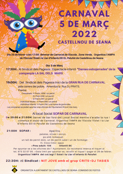 Castellnou de Seana celebra la Festa de Carnestoltes, i ho fa amb un seguit d'actes entre els que destaquen la Gran Rua de Disfresses o l'actuació del grup Crit, entre altres.