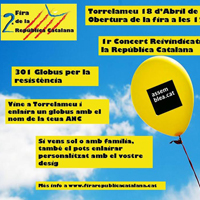 16:30h Inauguració de la fira per part de Carme Forcadell 19:30h Llançament de 301 globus per part de Toni Albà 22:00h Inici del primer concert reivindicatiu amb Ferran Civit.