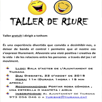 Participa al taller de riure de Tiurana. Una experiència divertida que convida a desinhibir-nos, a deixa de banda el control i permetre que el nostre cos s'expressi lliurement. Afavoreix una visió positiva i creativa de la vida i de les relacions entre les persones a través del joc i el moviment.